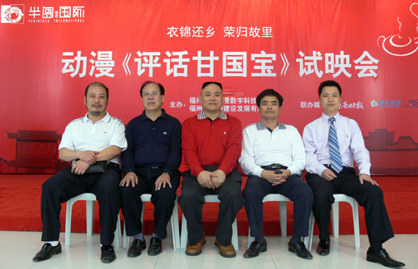 此次试映活动得到了“半岛国际”的开发商——福州市恒坤建设发展有限公司的大力支持,在项目开发之初他们就一直重视对社区文化的挖掘、建设和推广。另外,据五彩动漫公司的董事陈忠志介绍,之所以选择在“半岛国际”举办这场规模空前的动画试映会,是由于其特殊文化地理位置决定的:半岛国际与中亭街、台江码头咫尺之遥;周围遍布严复、陈靖姑等福州历史名人遗迹;以半岛国际为中心的苍霞区古来就有 “文化中心”、“名人活动区”之称。而在本剧《评话甘国宝》中,甘国宝到富有的表姐王莲莲处借贷未果,反遭奚落,因此发奋图强,最后“一日十三升”成为一代名将。该剧情就真实的发生在半岛国际周边。能够在这样一个有深厚文化底蕴的高尚社区举办试映会能让大家更深入的了解到其中的历史和文化意义。